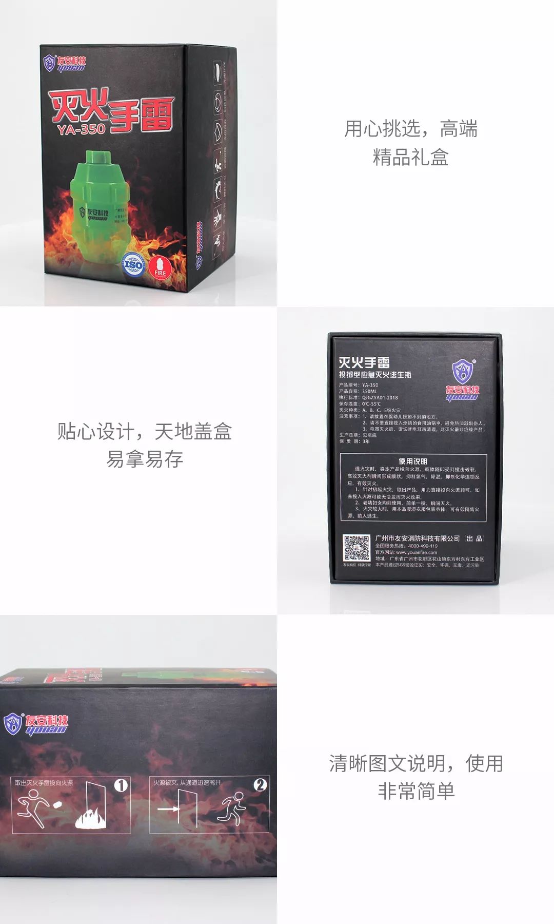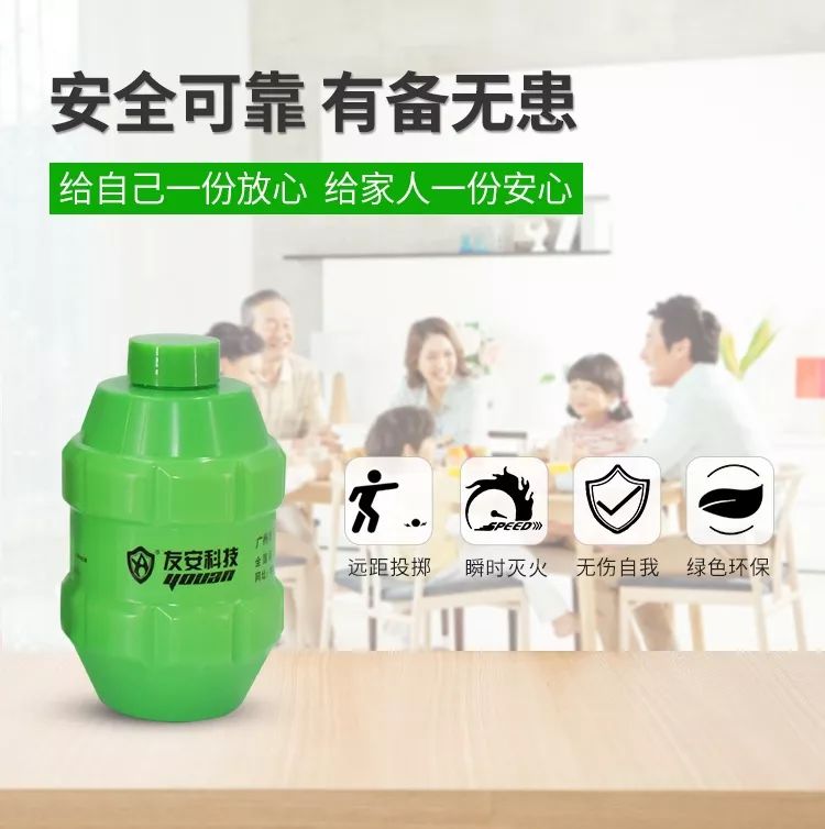 意外火災(zāi)無法預(yù)測(cè),安全守護(hù)必不可少,友安滅火手雷簡(jiǎn)單易用,滅火效果迅速,可在家庭任何角落放置一個(gè),也可便捷攜帶,隨時(shí)守護(hù)在你的身邊。