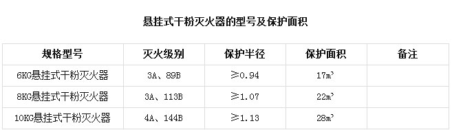 懸掛式干粉滅火器的保護(hù)面積一般按10平方計(jì)算,保護(hù)半徑為3米,如果安裝位置比較高則保護(hù)面積相應(yīng)減少。其動(dòng)作溫度有四種,分別是57℃、68℃、79℃。懸掛式干粉滅火器安裝方法很簡(jiǎn)單,根據(jù)空間大小計(jì)算滅火器的數(shù)量,懸掛式干粉滅火器需要吊頂安裝,安裝高度不宜超過(guò)五米。