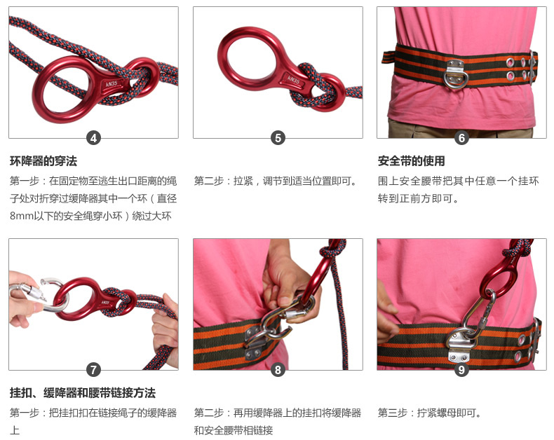 2、可以重復(fù)使用,為更多人員提供逃生機(jī)會(huì)。一位逃生人員安全著地之后,另外一位逃生人員可將繩子另外(掛安全環(huán)的)一端拉上來(lái)重新掛于牢固的固定點(diǎn)上,原來(lái)掛于固定點(diǎn)的一端拋向樓下,再套上安全帶第二位人員就可以再次逃生,市面上的一些逃生裝備第一次可以使逃生人員安全降到地面,另外人員再使用時(shí)操作比較麻煩,費(fèi)工費(fèi)時(shí)從而貽誤逃生時(shí)機(jī)。