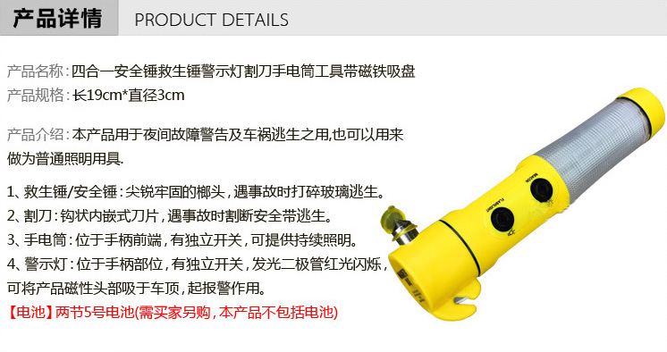 產品名稱:逃生錘(綜合型黃色多功能)