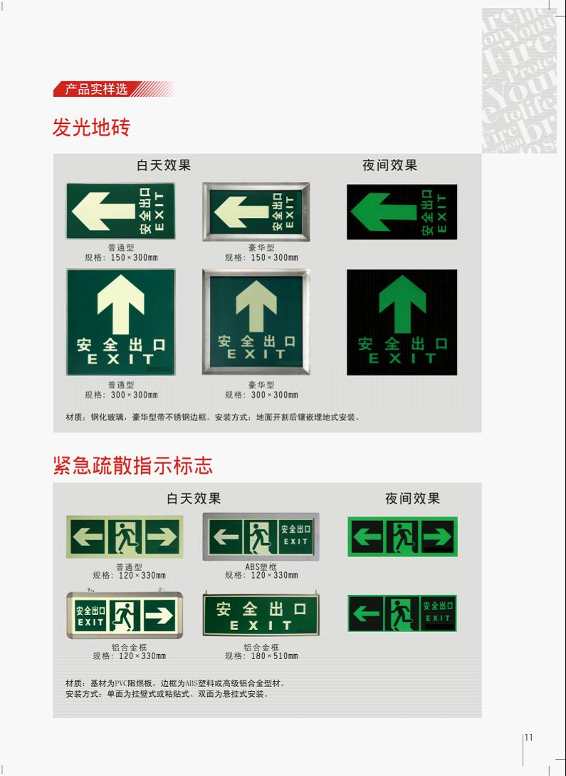 該產(chǎn)品使用中無(wú)需電源,具有非常優(yōu)異的吸光-蓄光-發(fā)光功能,且可以無(wú)限次反復(fù)使用,使用壽命長(zhǎng)達(dá)15年。如果發(fā)生緊急突發(fā)事件導(dǎo)致電力中斷,能為消防人員提供清晰、準(zhǔn)確的消防設(shè)備位置、類別指示;為緊急疏散人員提供持續(xù)的、清晰地方位指引,引導(dǎo)人員在最短時(shí)間內(nèi)從危險(xiǎn)區(qū)域疏散到安全地帶?;谛罟庾园l(fā)光型消防安全標(biāo)志的優(yōu)異性能,現(xiàn)在已經(jīng)成為世界各國(guó)消防安全部門優(yōu)先推廣的消防安全標(biāo)志高科技新品,在消防安全、緊急疏散、交通運(yùn)輸?shù)阮I(lǐng)域得到了廣泛的應(yīng)用。