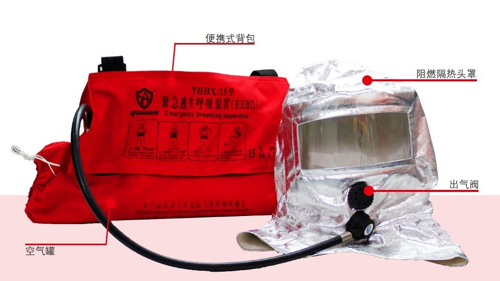 船用緊急逃生呼吸裝置是一種為從危險(xiǎn)氣體場(chǎng)所逃離的人員提供呼吸保護(hù)的裝置。它由使用者自攜一只貯存壓縮空氣的氣瓶,氣體以低壓恒流狀態(tài)輸入保護(hù)罩內(nèi),人員呼吸時(shí)不依賴(lài)環(huán)境氣體。該裝置體積小,可由人員隨身攜帶且不影響人員的正?;顒?dòng)。其結(jié)構(gòu)簡(jiǎn)單,操作簡(jiǎn)便,使用者在未經(jīng)培訓(xùn)的情況下,簡(jiǎn)要閱讀使用說(shuō)明后即可正確操作。